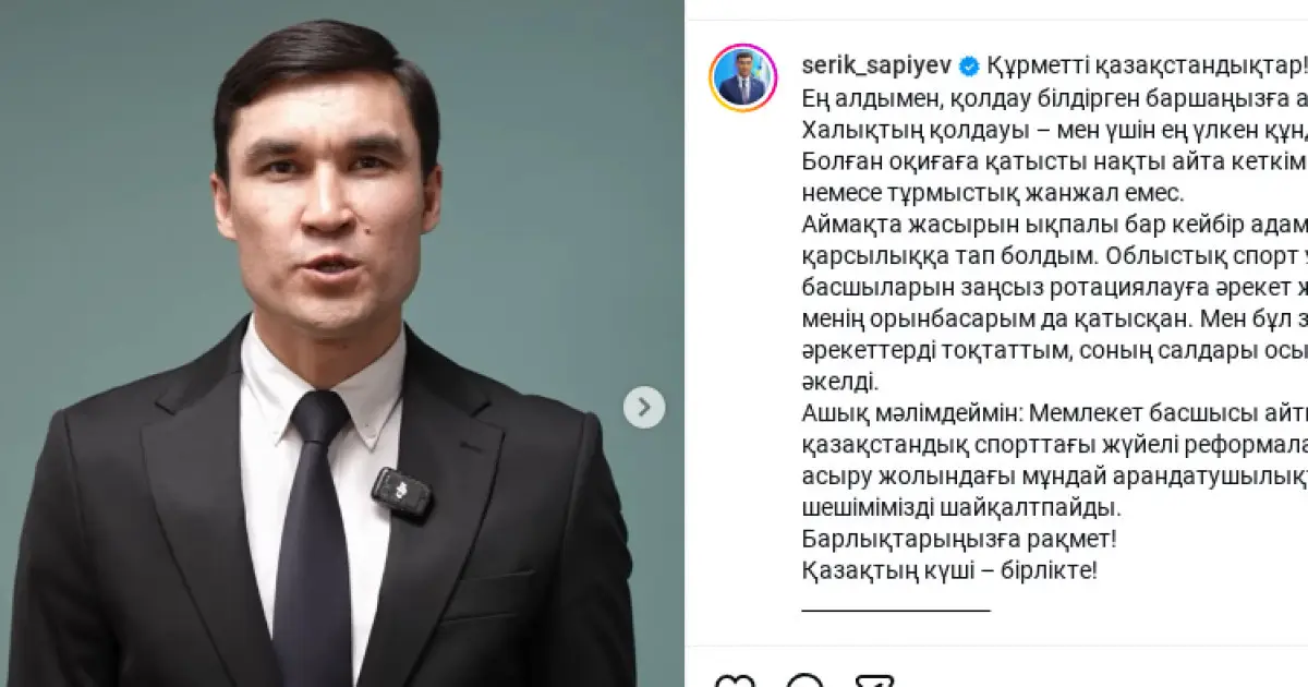 «Ықпалды адамдардың қарсылығына тап болдым»: Серік Сәпиев дау туғызған жағдайдың мән-жайын түсіндірді
